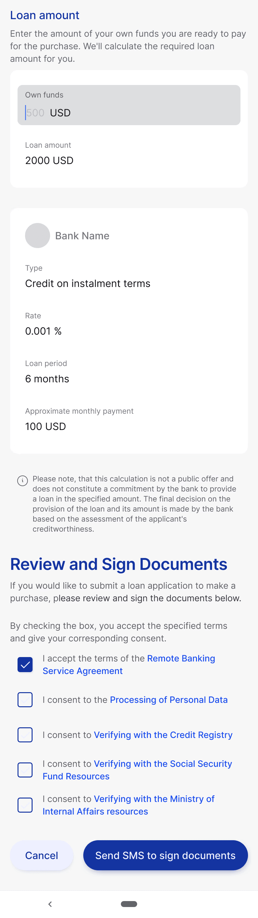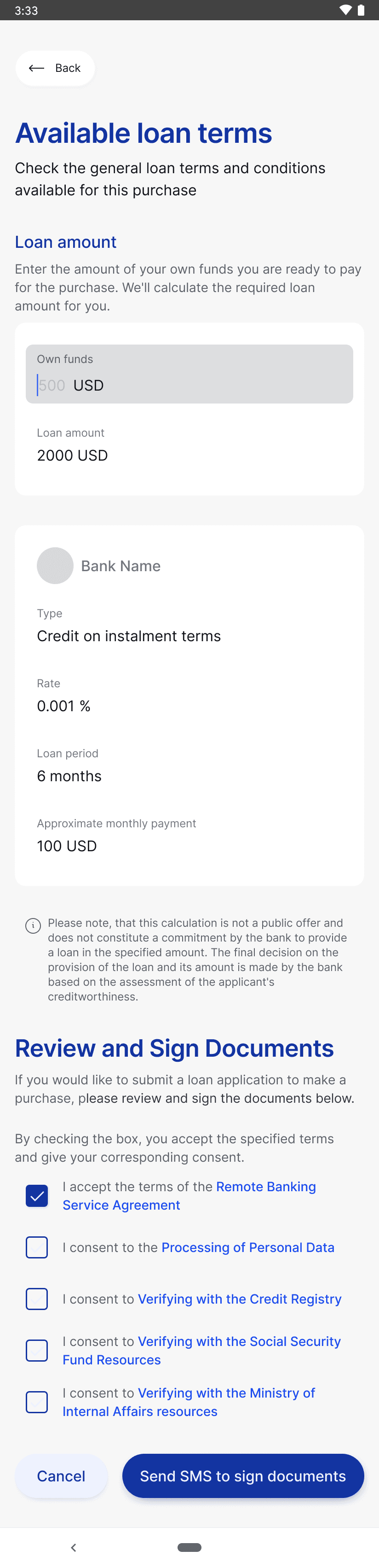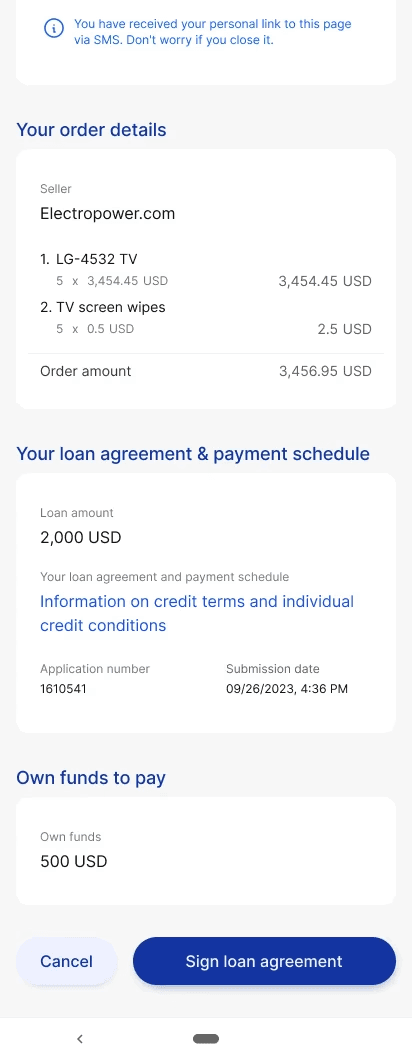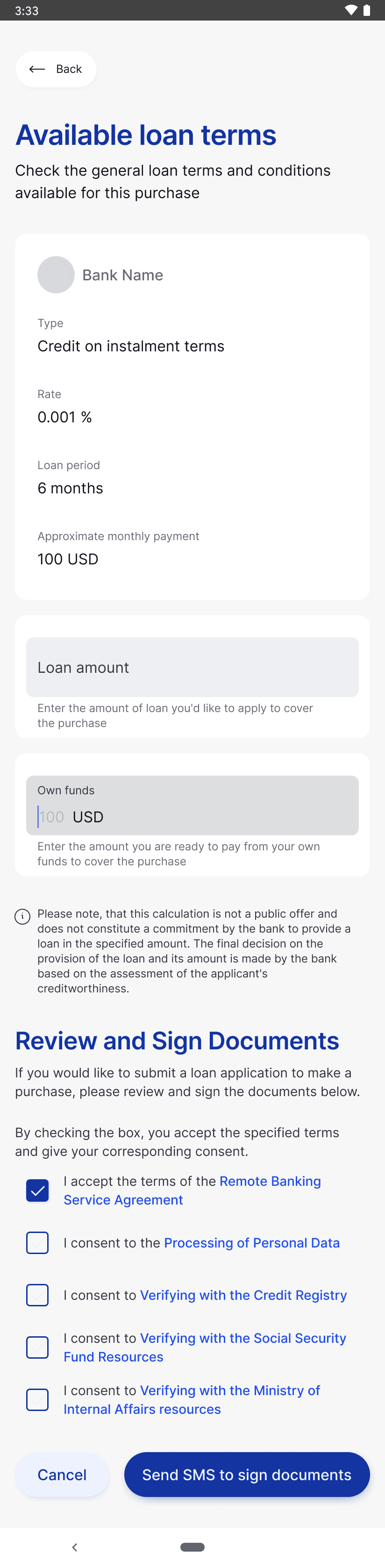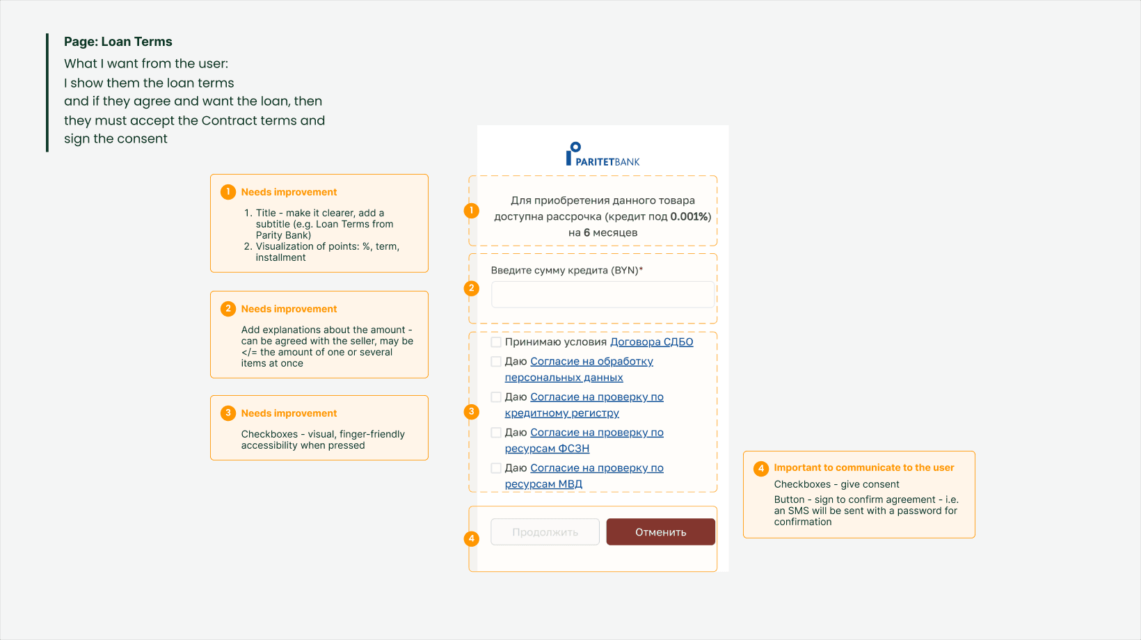 I redesigned a micro-financing app enabling in-store loan applications without bank clerk assistance. The developer-built MVP validated functionality but lacked usability - unclear flows, missing feedback, and excessive legal complexity reduced conversion potential.