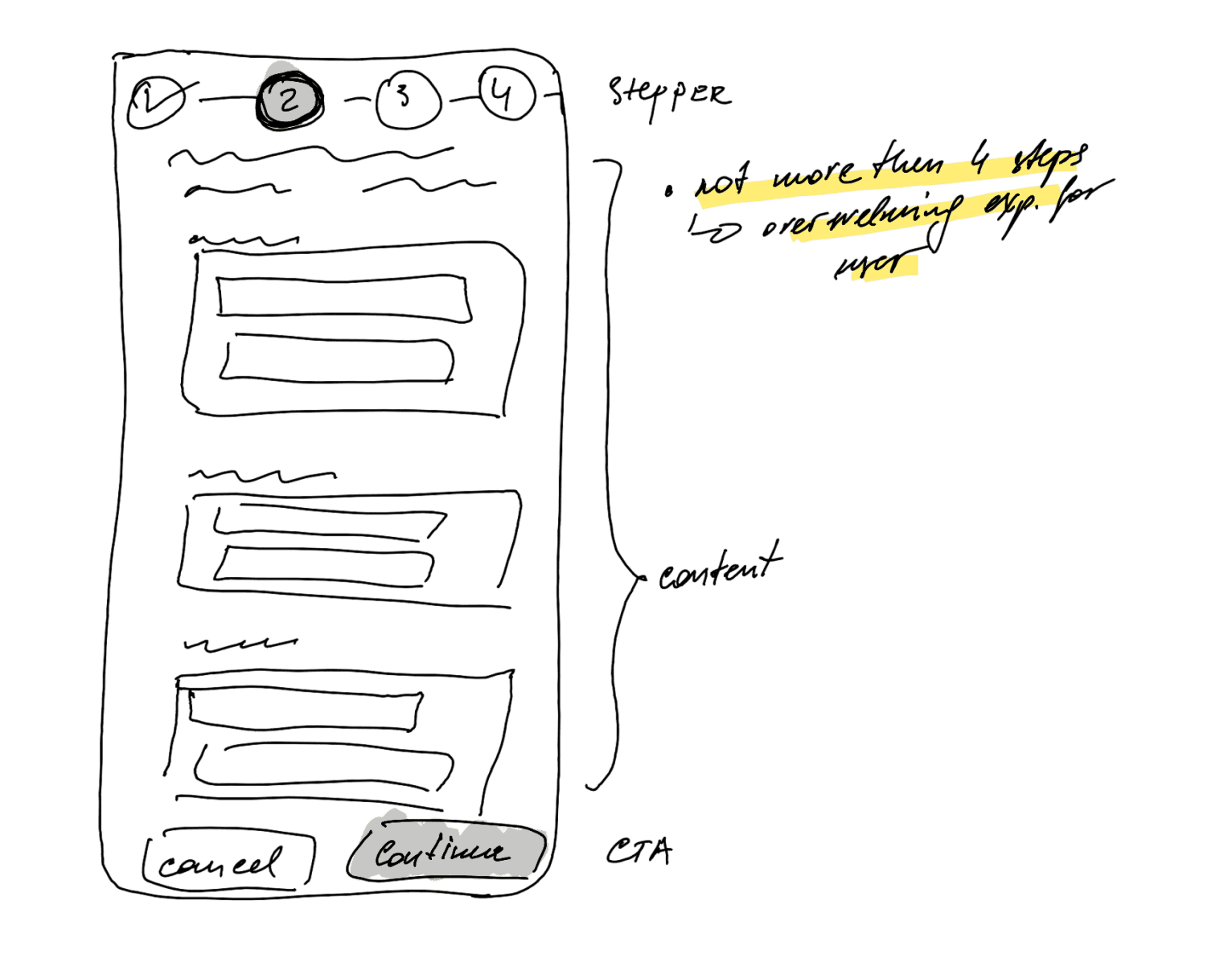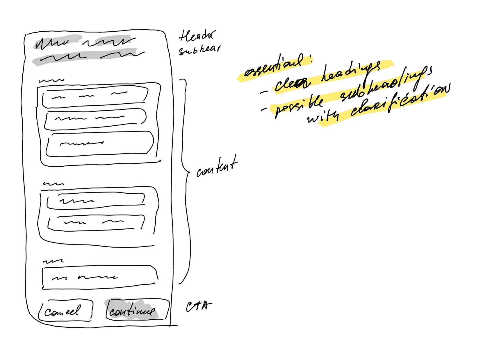 To create intuitive flow without visual overload, I decided to stick with headlines supported by small hints to explain why each piece of data was needed.