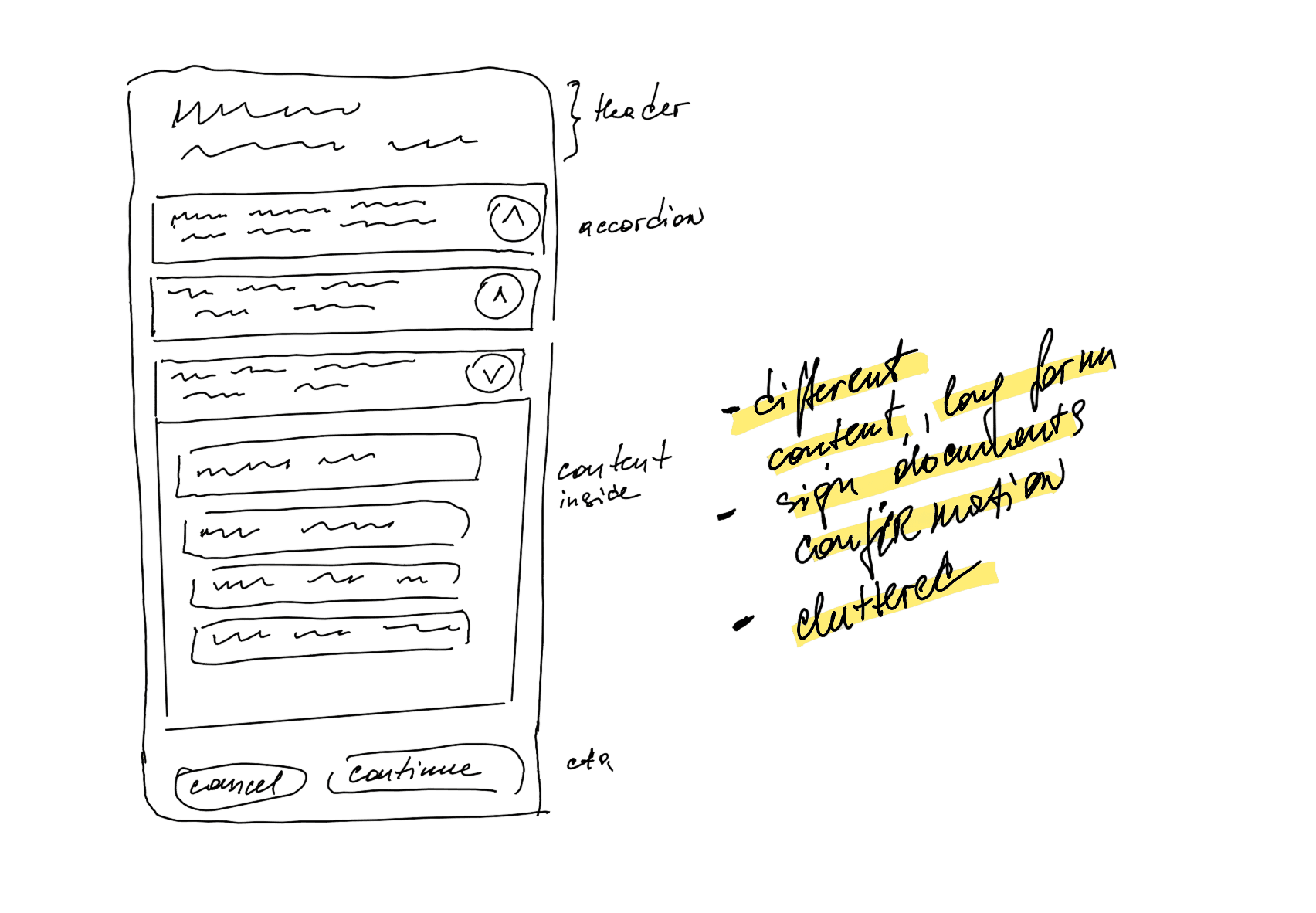 To find the best way to handle legal complexity, I've sketched multiple layouts.