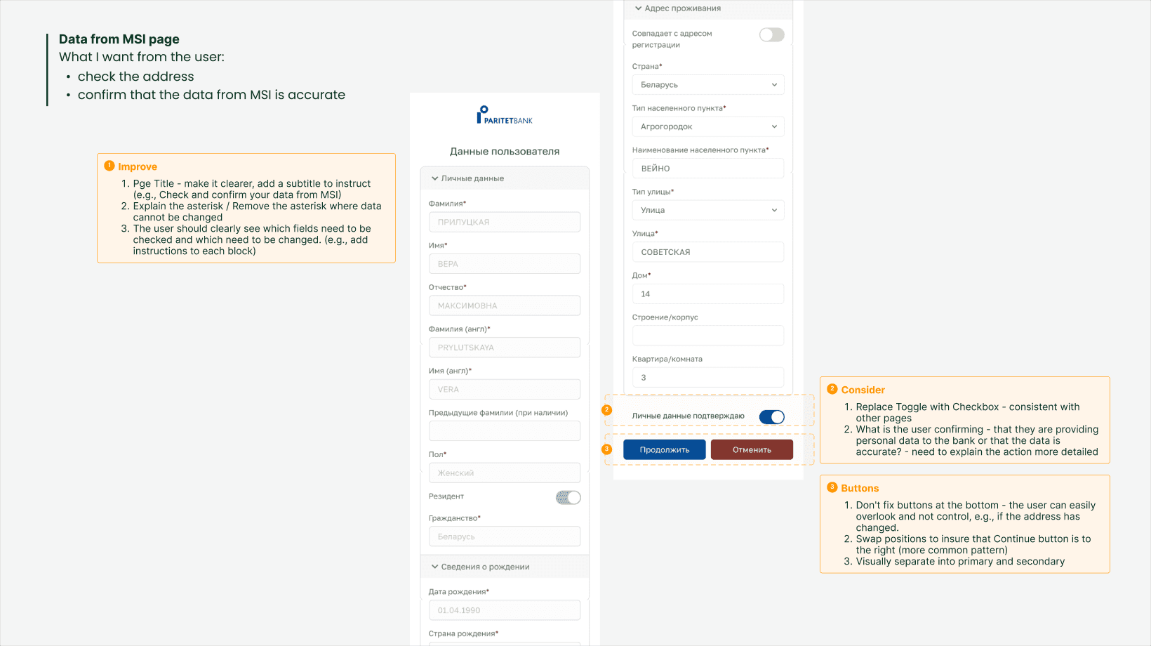 I restructured the layout, grouped related questions, and added contextual hints so users always knew why we were asking for information.
