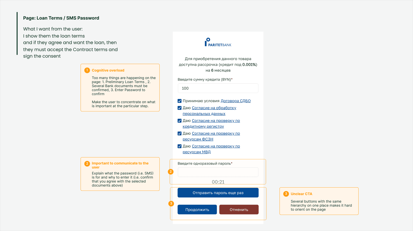 To see how the users would manage to apply for a loan with the new design, I conducted moderated usability testing. Overall, all users completed the assigned tasks, but the testing revealed confusing flows and areas that remained unclear.